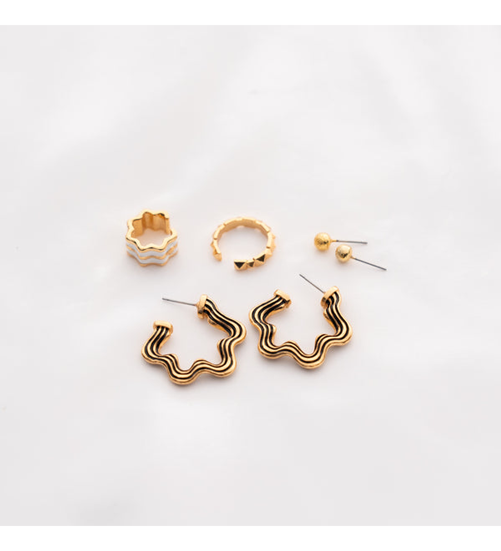 - Incluye: 1 par de candongas, 2 unidades de earcuff y 1 par de topos.