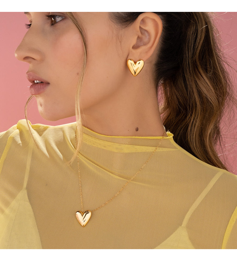 - Incluye: 1 cadena con dije corazón, 1 par de aros corazón.